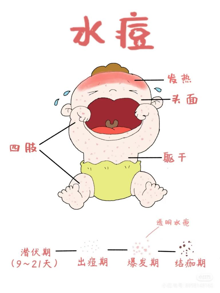 2.水痘:全身出现红色皮疹,伴有瘙痒和发热等。