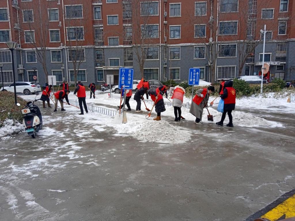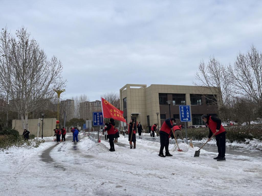 为在防灾减灾中充分发挥基层党组织战斗堡垒作用和广大党员先锋模范作用的,进一步弘扬志愿服务精神,保障居民的出行安全,2月22日,后勤管理处党总支联合文苑路社区党支部以雪为令,闻雪而动,组织20余名党员志愿者开展扫雪除冰志愿服务活动。