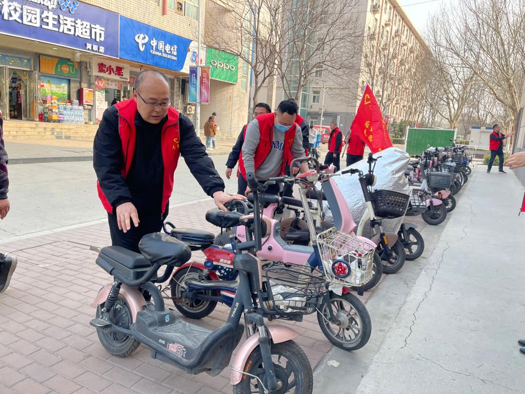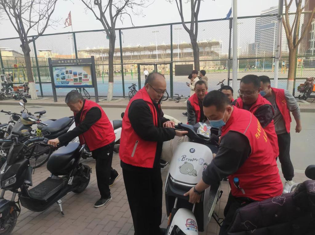 本次活动在1-7号学生宿舍楼非机动车停放区进行,旨在解决学生宿舍区自行车、电动车等非机动车停放凌乱的问题,后勤管理处20余名志愿者参加。志愿者们秉持实干精神,按照“规范停放,摆放有序,朝向一致”的原则,扶起一辆辆或倒塌或歪斜的非机动车,将它们摆放整齐,并张贴“文明骑行扬公德,规范摆放显素质”等宣传标语提醒师生。