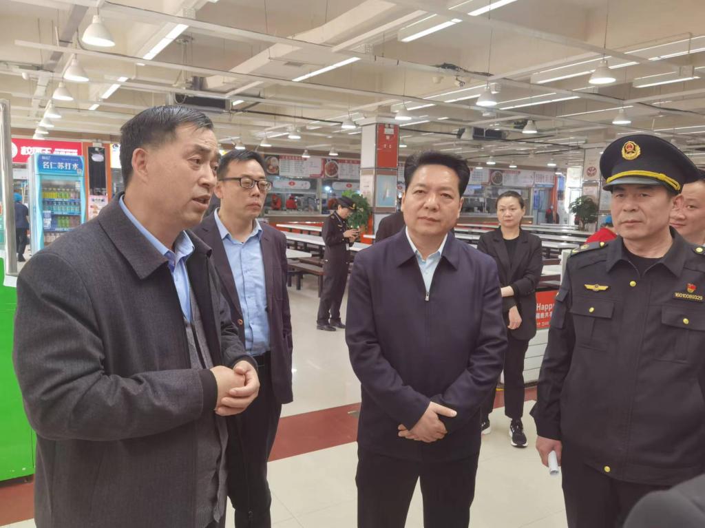 为进一步加强校园食品安全监管,筑牢校园食品安全防线,落实学校食品安全“两个责任”工作,3月29日上午,由郑州市市委编办主任马忠杰率队,郑州市市场监督管理局局长王德贤及区、办事处两级市场监督部门相关负责同志组成包保督导组深入我校,开展第一季度校园食品安全督导检查工作。副校长任枫轩及后勤管理处相关负责同志陪同督导。