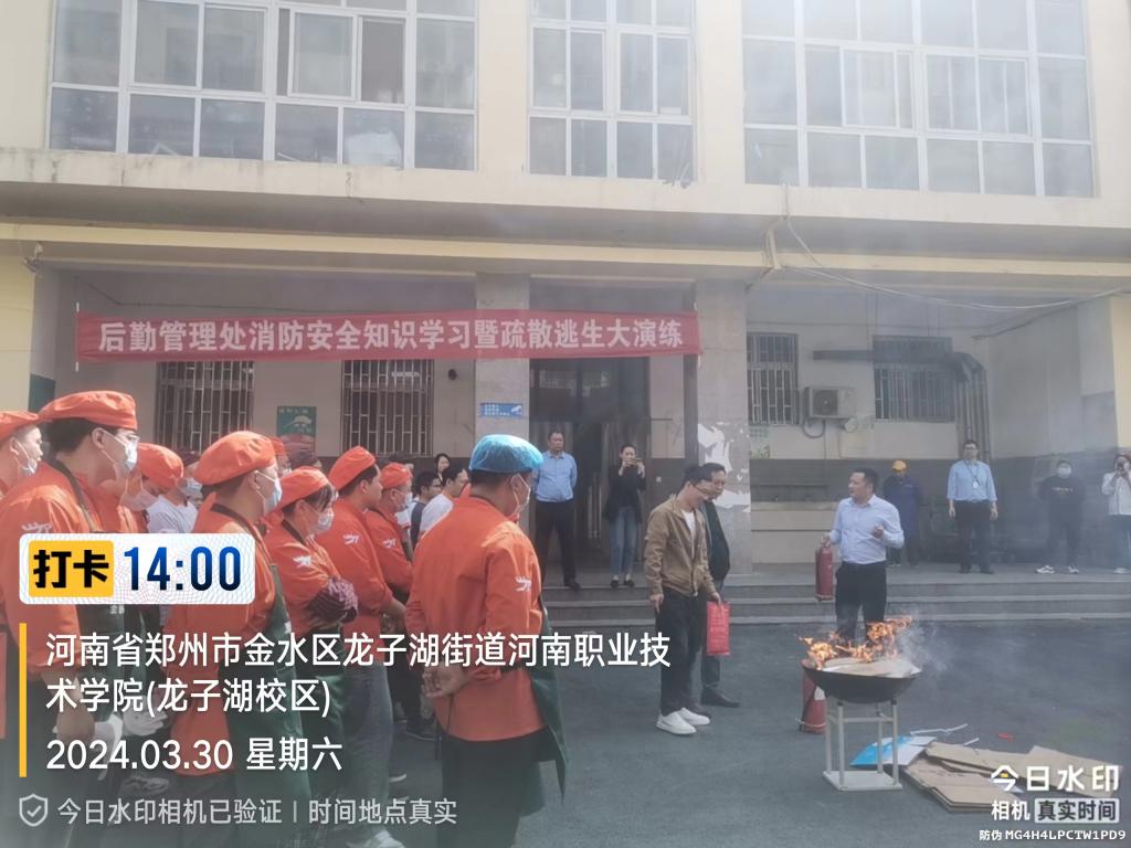 为切实提高师生员工消防安全意识和自防自救能力,营造安全和谐的校园环境。根据《教育部办公厅国家消防救援局办公室关于联合开展春季学校火灾疏散逃生大演练活动的通知》(教发厅函〔2024〕6号)要求,结合学校2024年春季安全大检查工作安排,3月29日-3月31日,后勤管理处组织教职工、饮食从业人员及物业服务人员集中开展了春季火灾疏散逃生大演练活动。