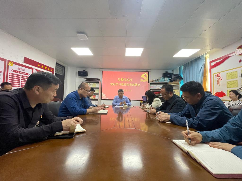 4月15日,后勤党总支在后勤楼105会议室召开党纪学习教育动员部署会,安排部署后勤党总支部党纪学习教育工作。后勤党总支全体党员参加会议,会议由后勤党总支副书记赵文涛主持。