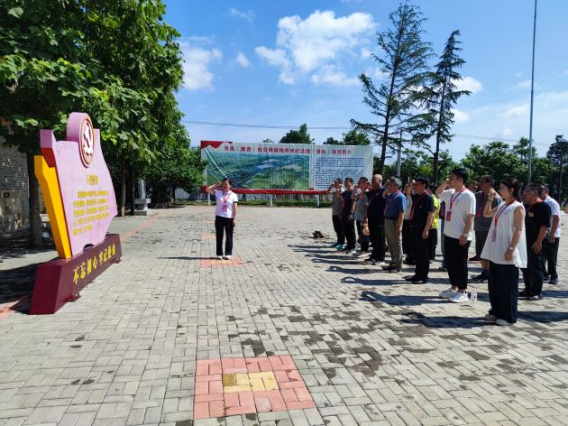铮铮誓言,初心永恒。为教育引导新发展党员铭记入党初心、强化党员意识、坚定理想信念,全体党员在河南(豫西)抗日根据地纪念馆重温入党誓词仪式。随后,老党员代表向新党员同志送上“政治生日”贺卡,一张贺卡承载着党组织对党员的殷切期望和深情祝福。在中国人民抗日战争暨世界反法西斯战争胜利75周年前夕,大家走进河南(豫西)抗日根据地纪念馆,向抗日英雄王树声将军敬献花篮,深切缅怀革命先烈。走进纪念馆,一幅幅详尽的历史图片、一个个珍贵的老物件,让大家身临其境,深刻感受到先辈们在硝烟弥漫、艰苦卓绝的抗战中所展现的爱国情怀、民族气节、英雄气概和必胜信念,在心中树起了不朽的历史丰碑。
