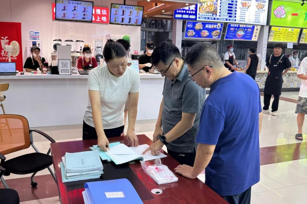 一是开展食品安全排查督查。各餐厅经营企业从2024年8月25日开始全部返岗,全面完成生产安全检查并检修维护食堂设施设备。8月26日至27日,各餐厅积极开展餐厅及后厨的卫生保洁消杀、设施设备水电、燃气、消防安全检查等工作;并在第一时间组织了完成饮食从业人员健康体检。8月30日-9月1日,主管副校长任枫轩带队,后勤管理处相关负责同志和食品安全员等参加,连续三天对校园各食堂进行了逐一检查,重点查看了食堂后厨环境卫生、消防及安全生产、大宗食材采购及贮存、库房食材保质期、消杀灭害与防鼠灭蝇、员工健康管理等情况。