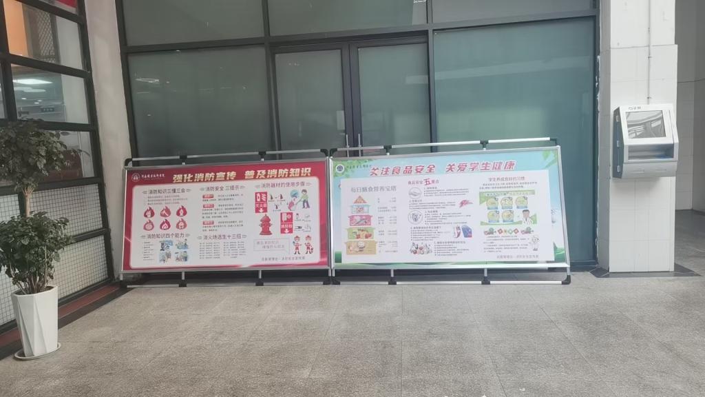安全宣传氛围营造阶段,后勤部门在学生餐厅、校园商超等人员密集场所设置专题展板4块,悬挂“平安校园共建共享”主题条幅,以图文并茂的形式普及安全用火、用电、应急疏散等安全知识,让安全理念深入师生日常。