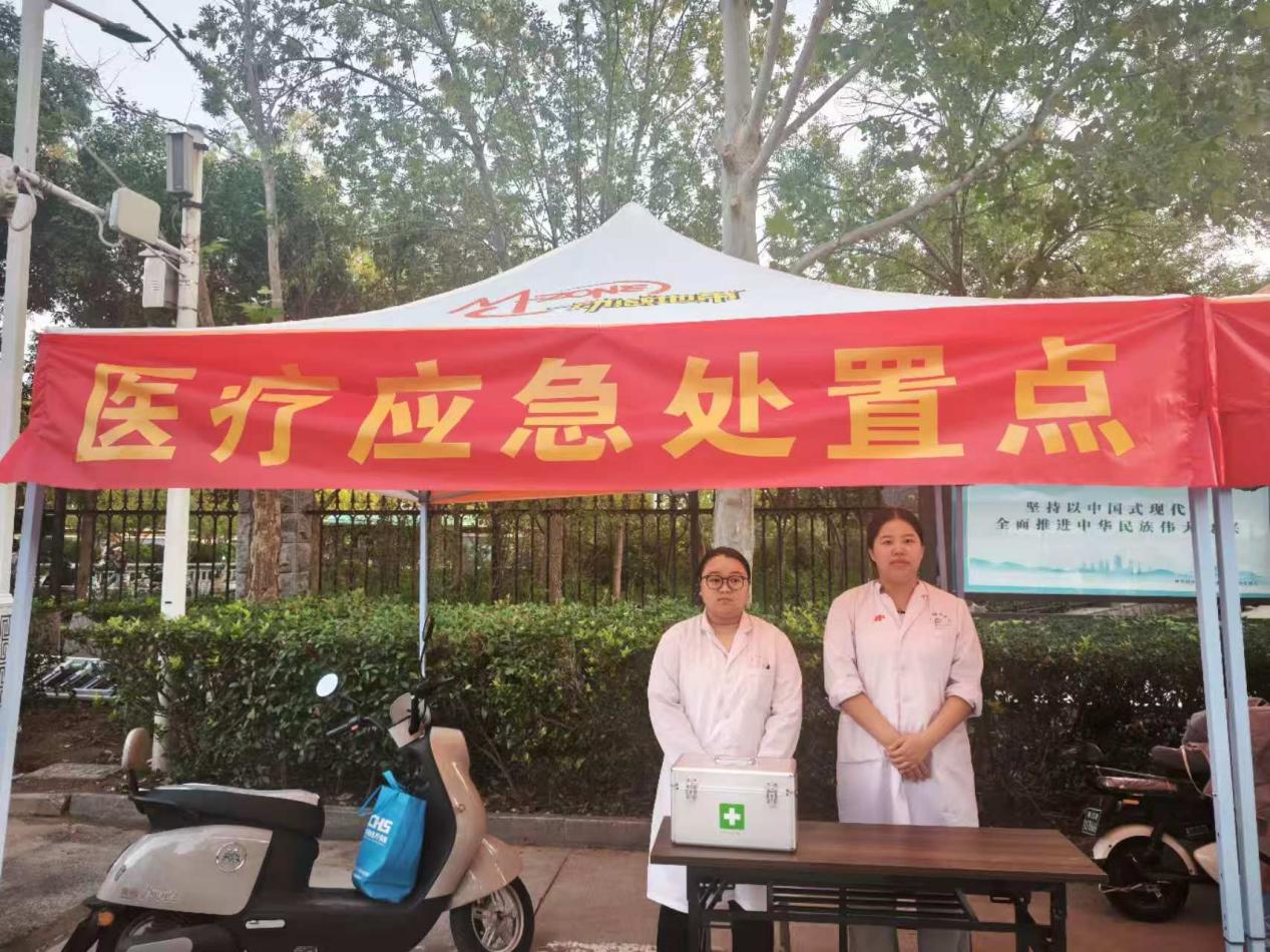 健康守护强化“安心”。保障新生健康安全是迎新工作的重中之重。后勤管理处医疗中心在东南门入口内侧设立了“医疗应急处置点”,安排专业医护人员值班值守,配备常用药品、急救设备与防暑物资,确保突发身体不适等情况能第一时间得到有效处置。该点同时兼具健康咨询功能,为新生与家长普及防疫、防病等健康知识,实现“医疗+科普”双效合一,切实守护师生健康,筑牢校园安全第一道防线。